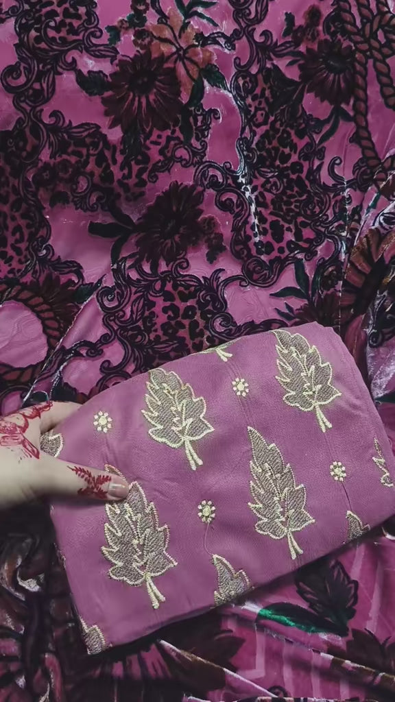 Experience timeless elegance with this stunning 3-piece embroidered outfit by Zara Shahjahan. Designed on premium Dhank Wool fabric, the ensemble features a beautifully embroidered front, back, and sleeves, paired with a plain trouser for a graceful balance. Completing the look is a luxury cheeta Palachi shawl (3 meters) — soft, rich, and perfect for adding a statement touch to your winter wardrobe.