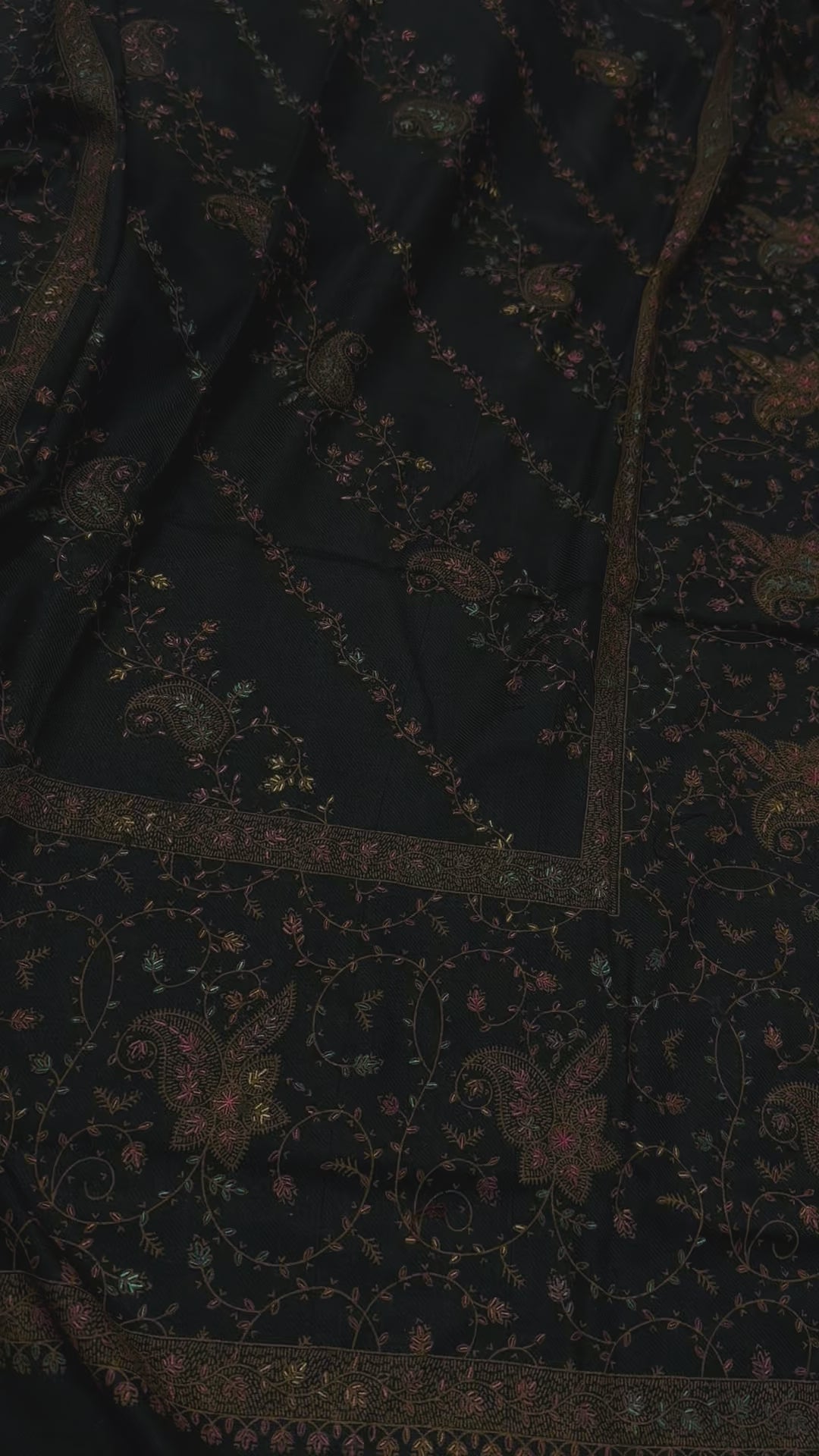 A graceful Bareeze black 3-piece suit exuding timeless elegance. Crafted from premium dhank wool, the shirt and trouser feature an allover plain texture, ensuring both comfort and sophistication. The ensemble is beautifully paired with a kacha tanka wool shawl, adding a touch of warmth and classic charm — an ideal winter choice for effortless style.